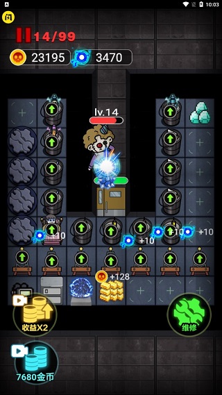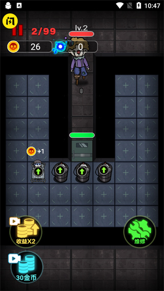 游戲中唯一的輸出手段,每升一級輸出會翻一倍,在于多而不在于精!炮臺一定要造很多,而不要照著一個炮臺一直升級,同時要注意炮臺的攻擊距離,避免造太遠(yuǎn)打不到鬼的情況。
