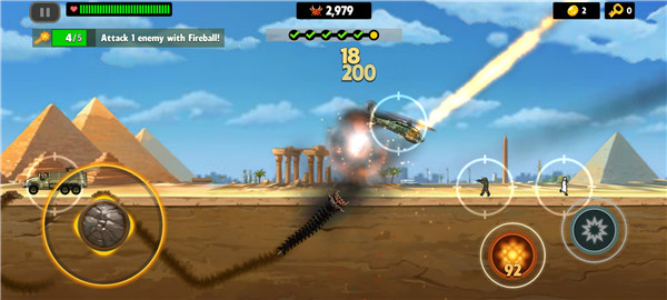 3、你需要不斷的襲擊上面的動物、人類以及各種車輛、飛機等人類社會的文明產(chǎn)物,或者獲取炸彈、興奮劑等獎勵加強戰(zhàn)斗力,并獲得擊殺經(jīng)驗值并升級。