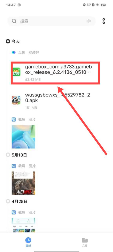 2.在文件管理的最近文件記錄中,找到3733的圖標(biāo),點擊安裝即可。