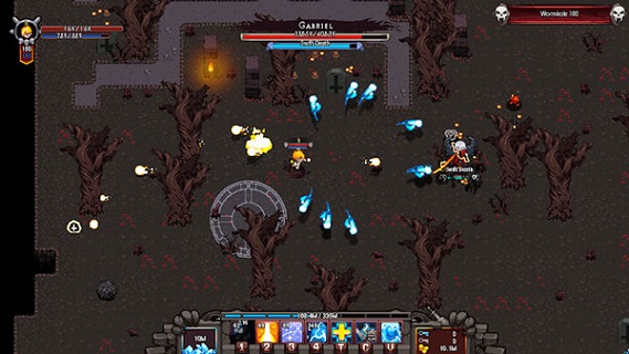 在城鎮(zhèn)中有一個(gè)藍(lán)色的橢圓,通過這個(gè)橢圓的魔法門我們可以選擇想要進(jìn)入的戰(zhàn)斗區(qū)域。接著就可以開始激動(dòng)人心的戰(zhàn)斗了。來到一個(gè)場景之后,每一個(gè)回合都有一定數(shù)量的怪物出現(xiàn)。我們需要控制角色不斷的在場景中擊敗怪物和破壞場景中的箱子來獲得獎(jiǎng)勵(lì),有時(shí)候我們會(huì)撿到裝備,有時(shí)候我們會(huì)撿到金幣。通過這樣不斷的戰(zhàn)斗獲得獎(jiǎng)勵(lì)讓自己的等級(jí)技能提升,獲得更好的裝備等等。
