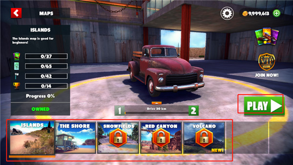 1、打開(kāi)在本站下載的脫離道路無(wú)限金幣版游戲,進(jìn)入游戲首頁(yè),選擇你想要的游戲場(chǎng)景,點(diǎn)擊開(kāi)始游戲;