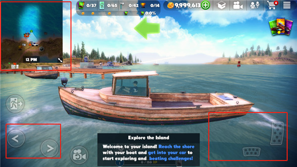 4、然后根據(jù)藍(lán)色方向標(biāo)將船開(kāi)至岸邊,然后上車(chē);
