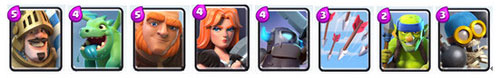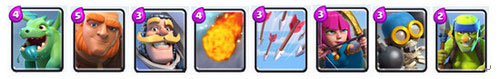 卡組特點:均衡型卡組,圣水消耗低,下兵節(jié)奏快,陣容轉換時間短;攻守能力均衡,但都不突出;對時機把握、操作水平要求較低;較懼怕對方王子偷家之類的戰(zhàn)術。