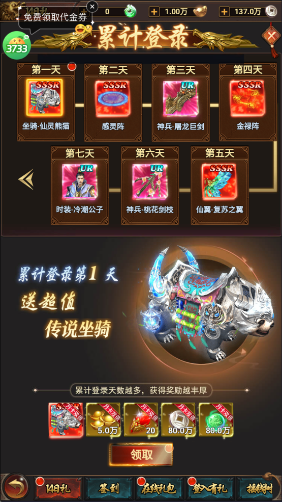 4、七日登陸送絕版神話時裝,狂拽酷炫