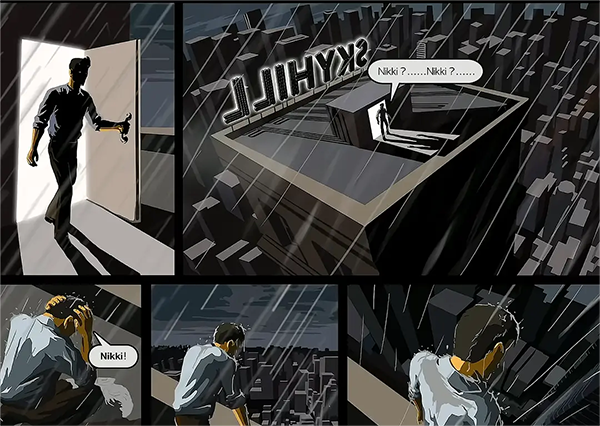 而相對(duì)應(yīng)的結(jié)局就是主角殺出重圍,打開(kāi)了酒店的門(mén),卻發(fā)現(xiàn)自己來(lái)到的“一樓”是樓頂……主角恍惚的呼喊著女兒的名字,自然無(wú)人應(yīng)答,而主角也在此時(shí)仿佛意識(shí)到了什么,企圖跳樓自殺