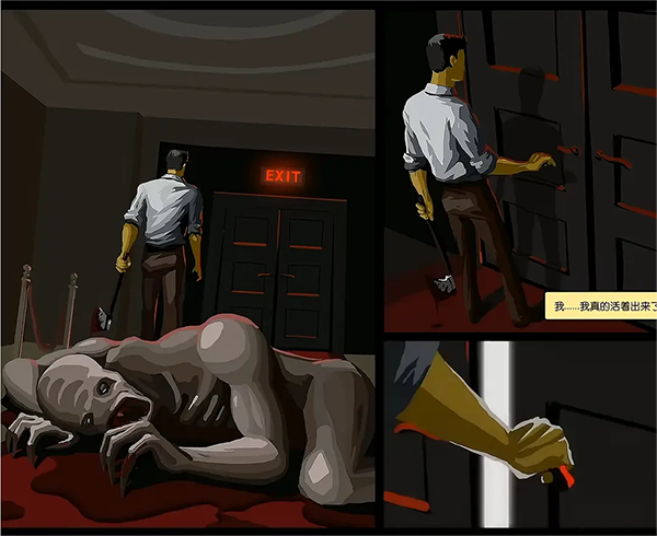 結(jié)局二:主角依舊是殺出重圍,但是這次打開(kāi)門(mén)后就不是樓頂了