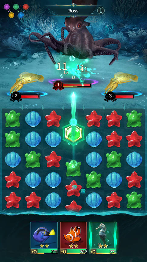 4、通過消除與海靈顏色匹配的棋子,你可以積攢怒氣。若棋子未擊中守關(guān)生物,你將獲得雙倍的怒氣。怒氣滿值后,可以選擇釋放戰(zhàn)斗技能。戰(zhàn)斗技能不僅能增強(qiáng)棋子的輸出效果,還會(huì)對(duì)其他海靈產(chǎn)生加成。建議優(yōu)先釋放增益技能,再釋放攻擊性技能,以最大化傷害。