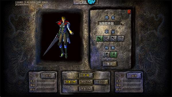 2、創(chuàng)建你的人物,選擇職業(yè)、性別,再取一個(gè)ID,完成后點(diǎn)擊開始;
