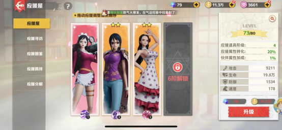 可以用應(yīng)援星光提升等級解鎖更多的屬性和上陣位置。