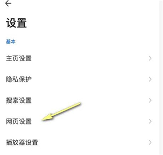 2、設(shè)置界面點(diǎn)擊網(wǎng)頁(yè)設(shè)置選項(xiàng)卡,如下圖所示